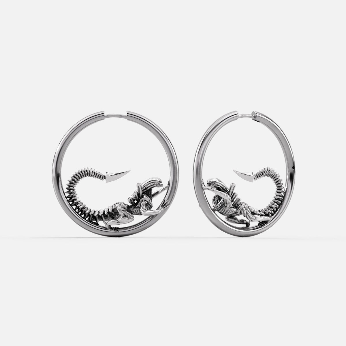 BIOMECHANICAL ALIEN HOOP EARRINGS
