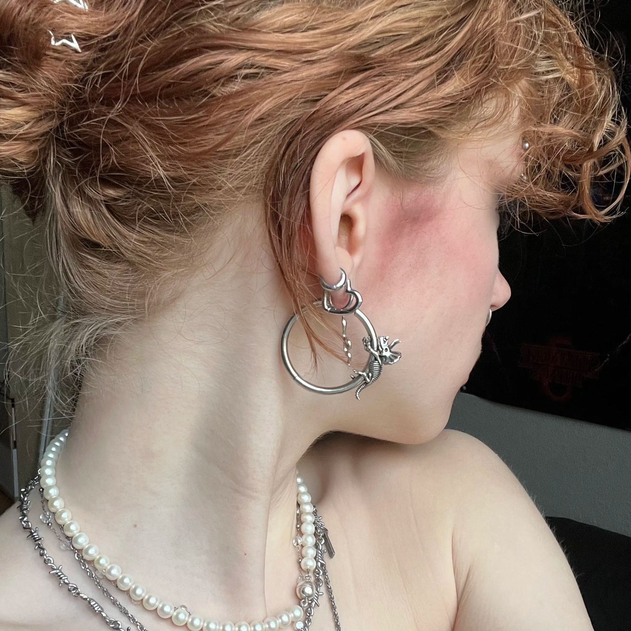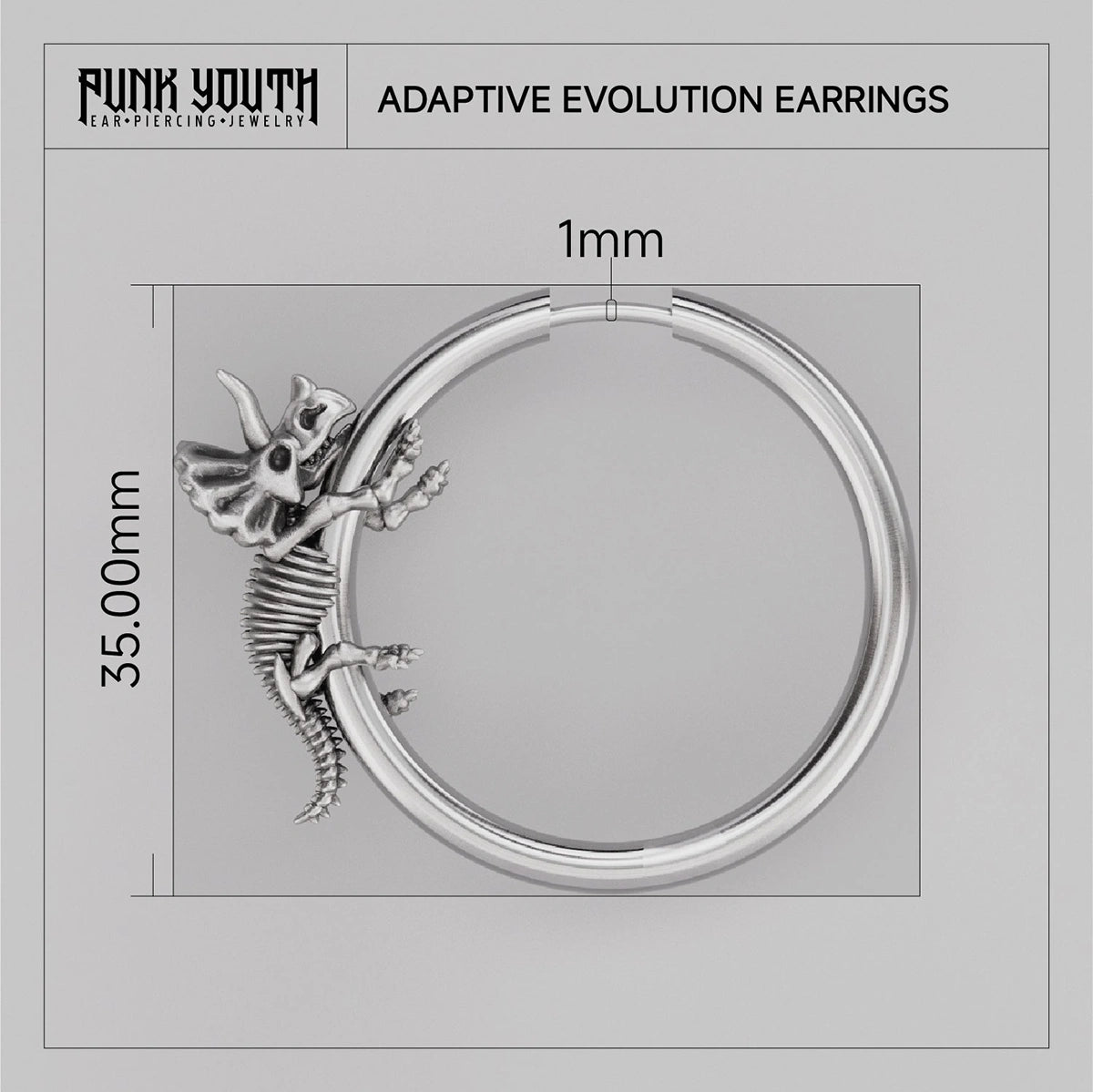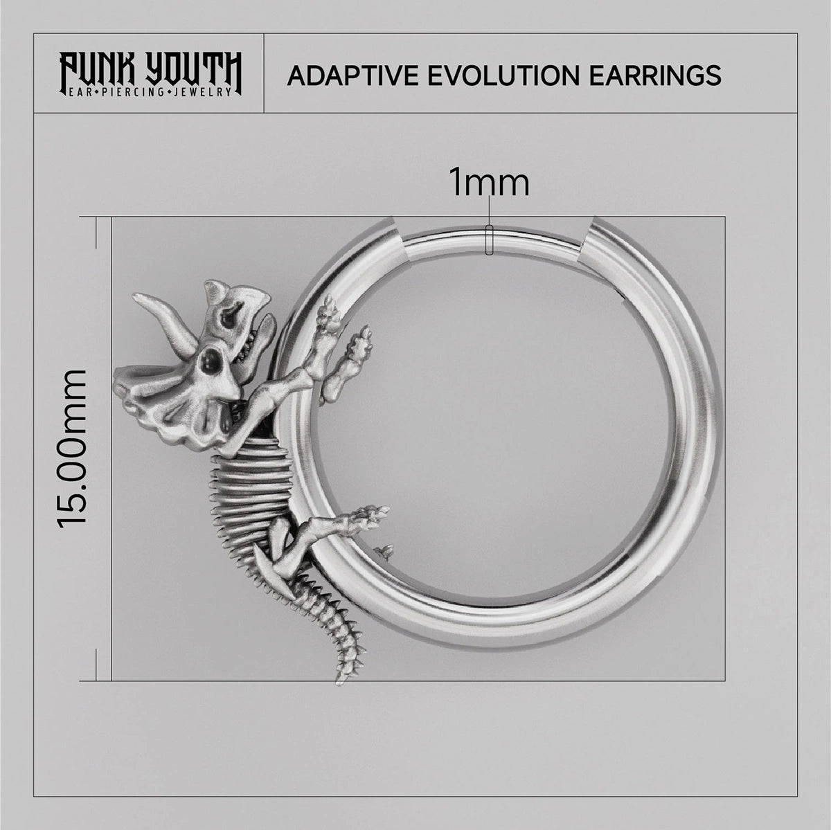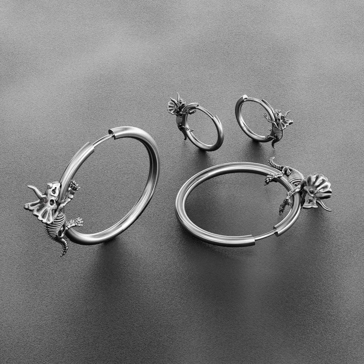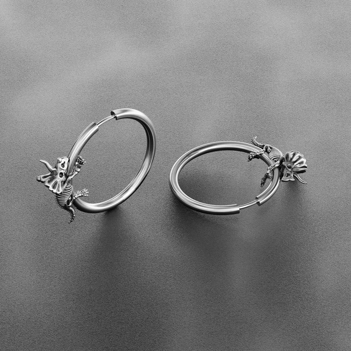 The earrings feature a striking combination of dinosaur skeleton and frilled lizard, blending ancient and modern elements into a unique and intricate design.This item is sold as a pair.