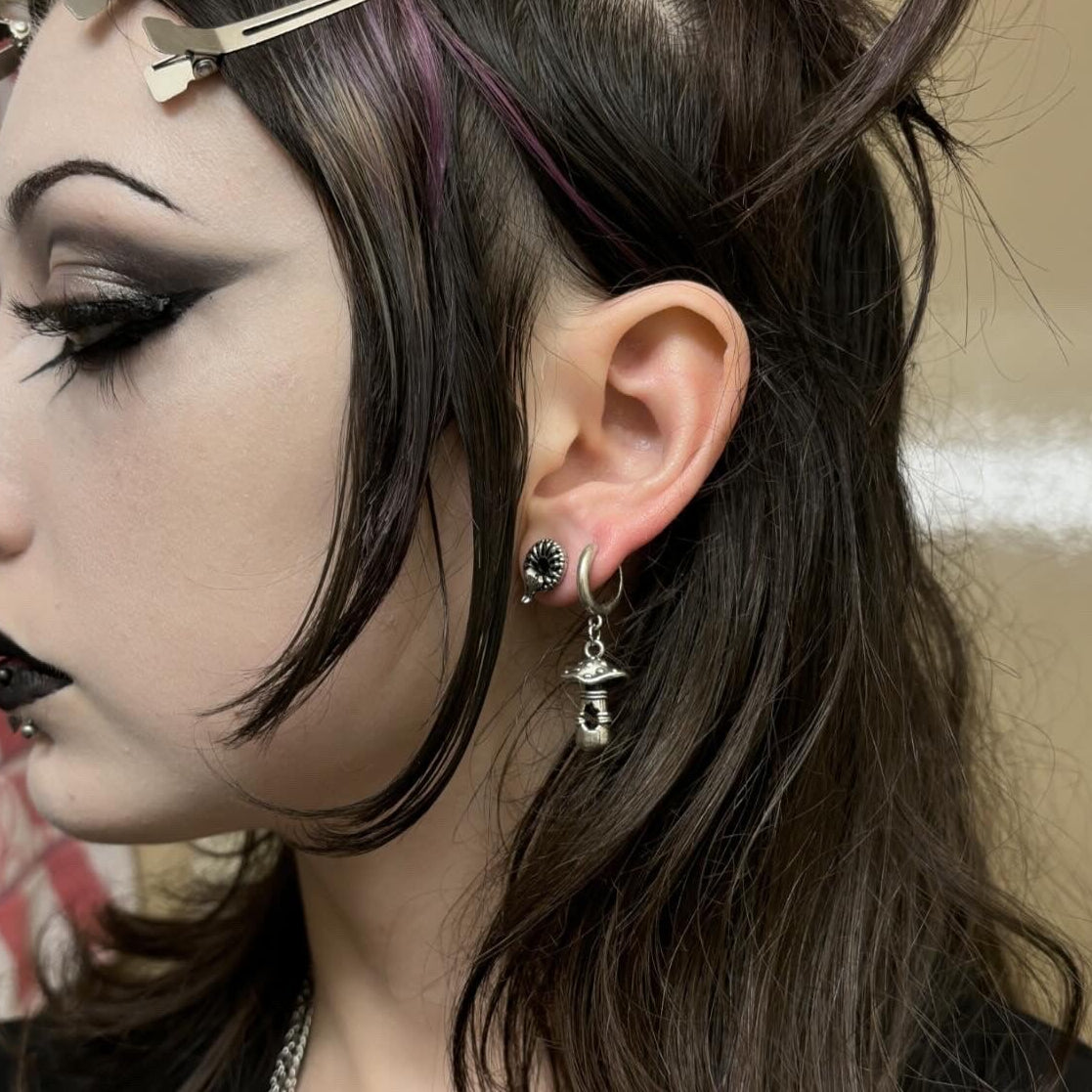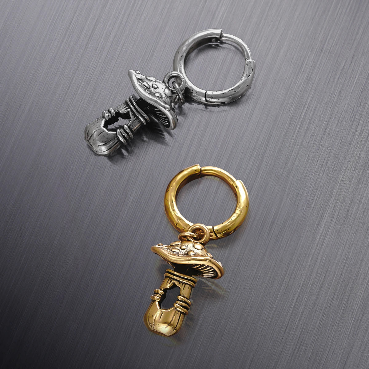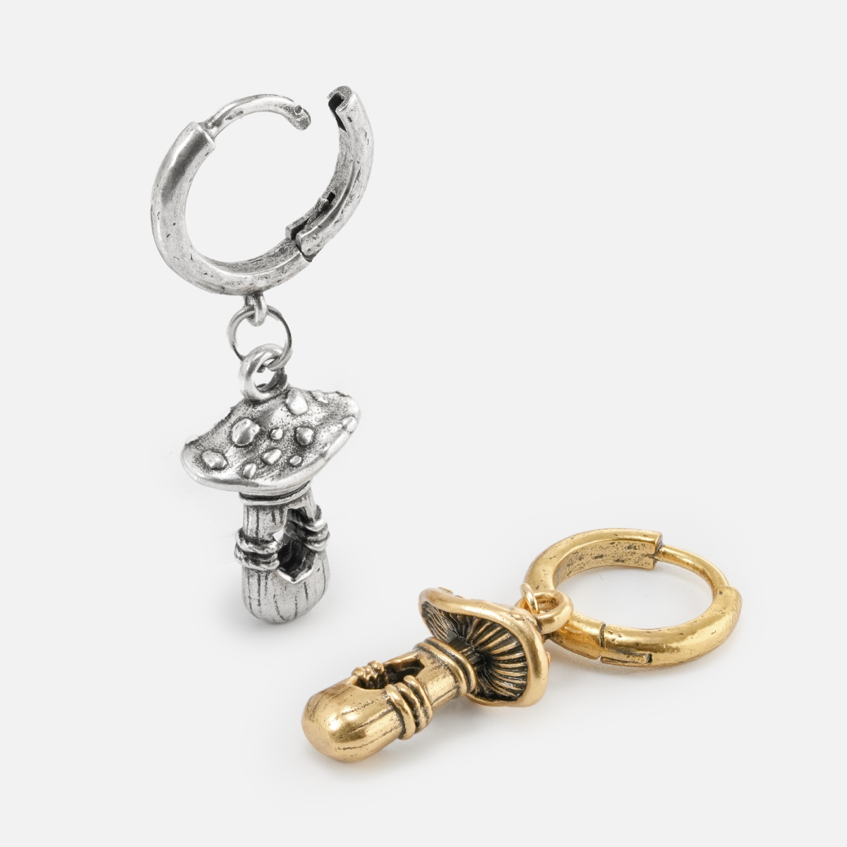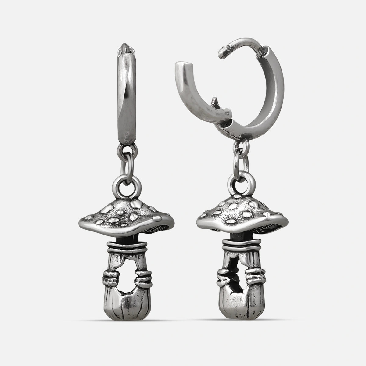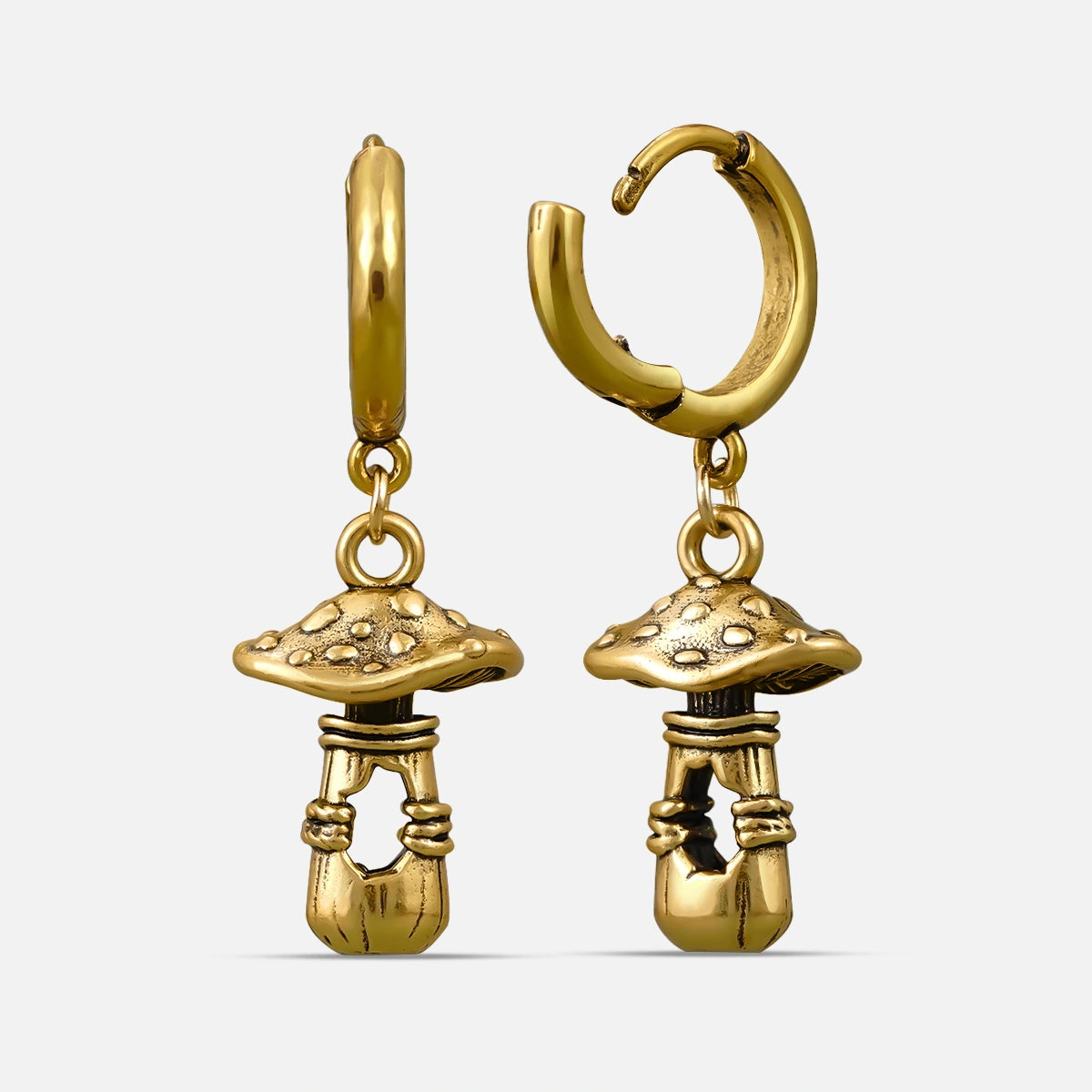 This Mystical Mushroom earring features a delicate mushroom shape, showcasing intricate natural details that captivate. This item is sold as a pair.