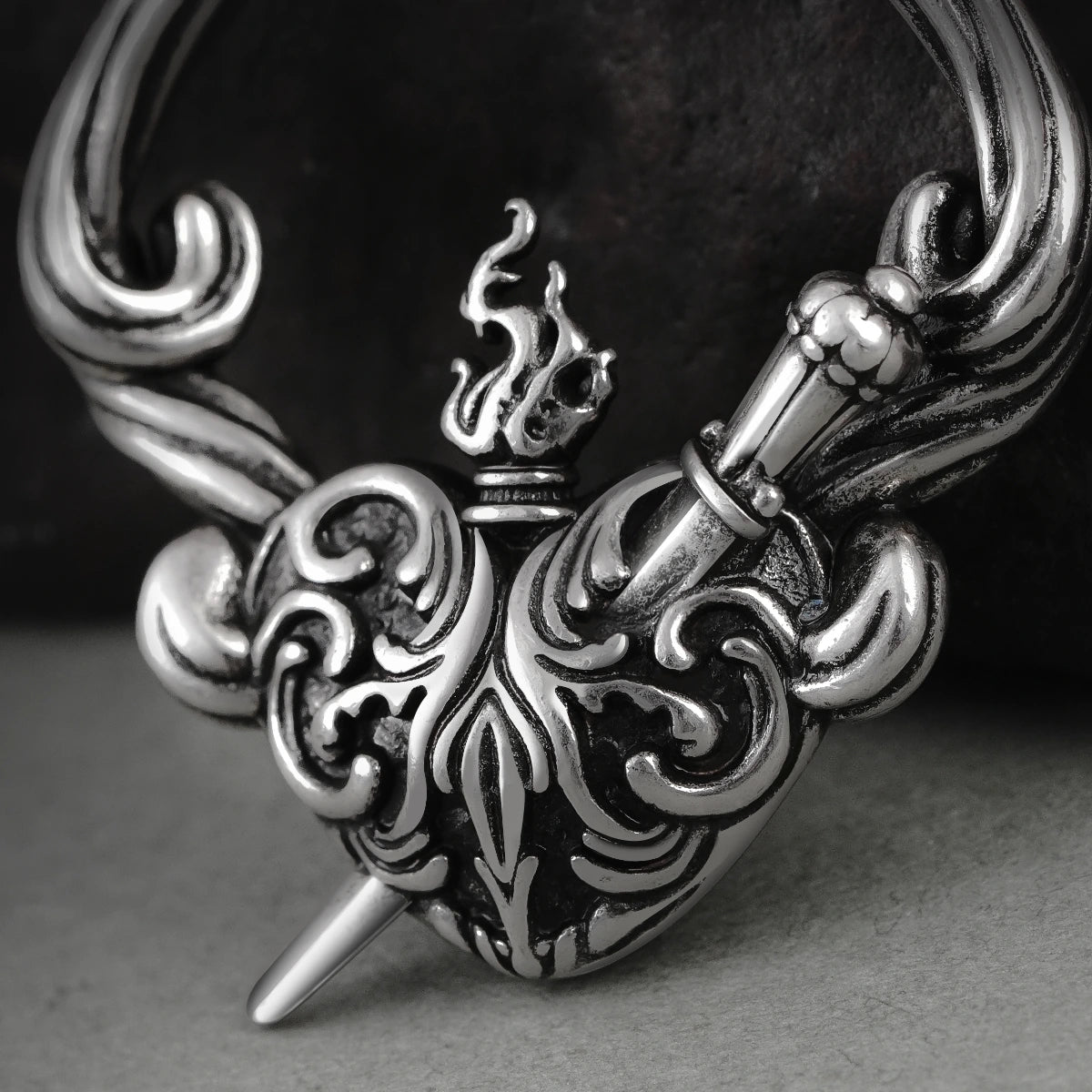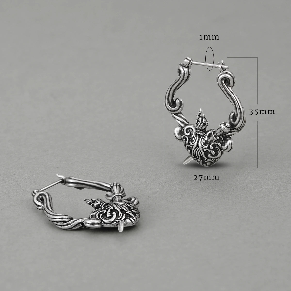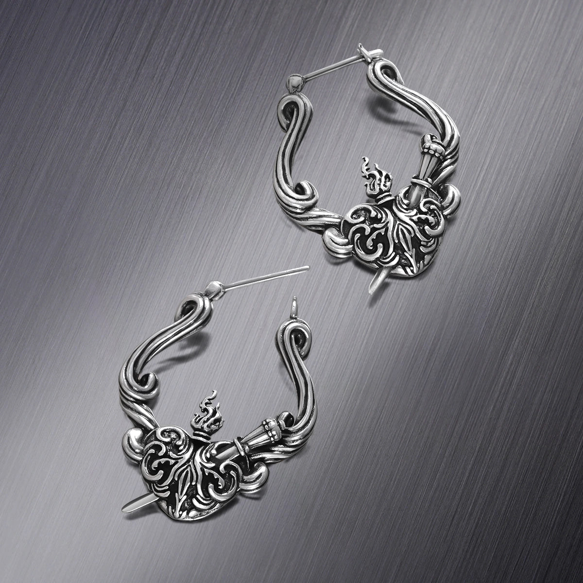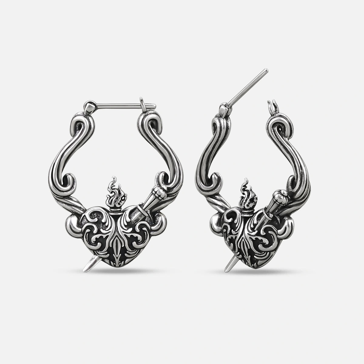 The Passionate Heart Earrings showcase a stunning heart shape intertwined with elegant flame motifs, crafted from premium materials for a bold yet refined look. This item is sold as a pair.