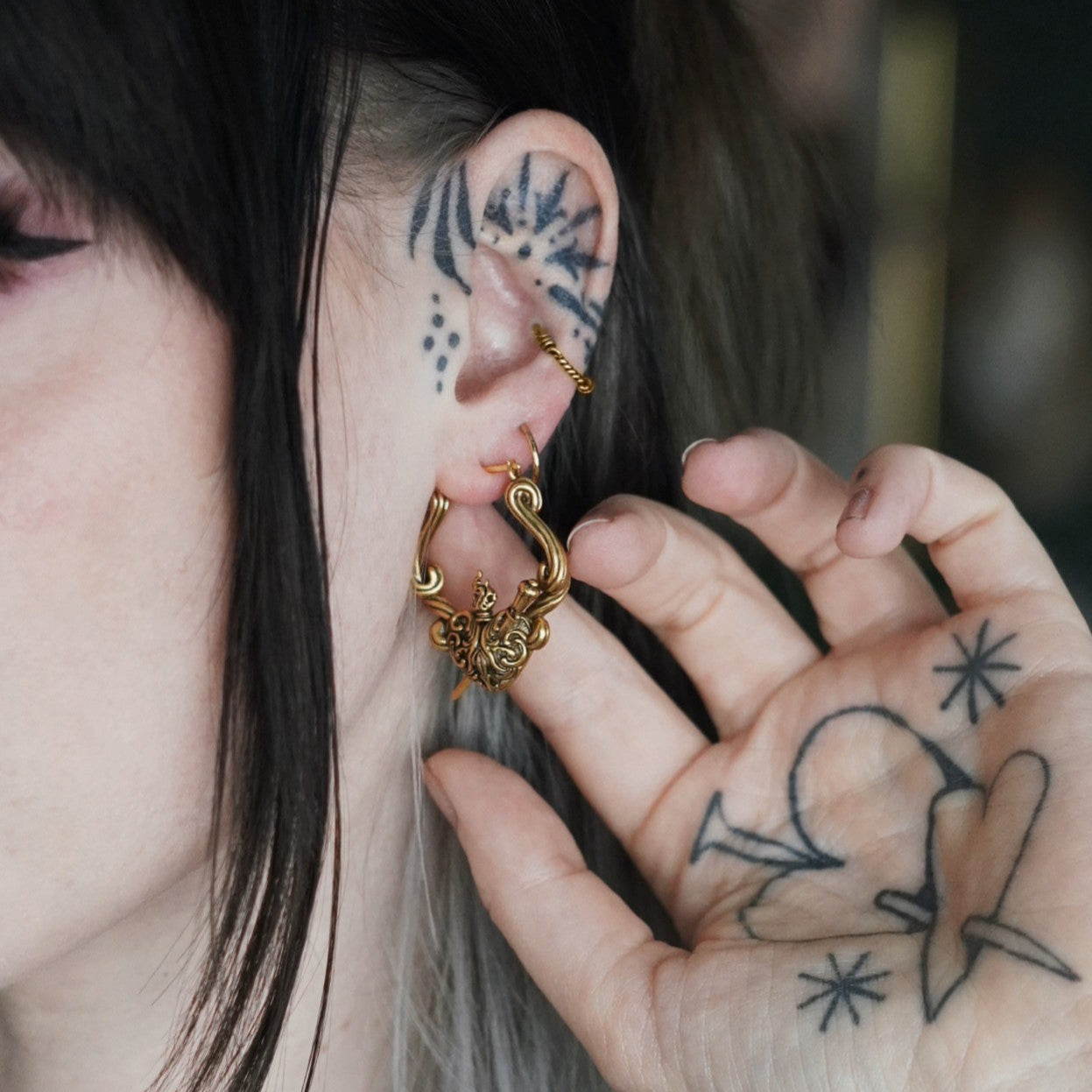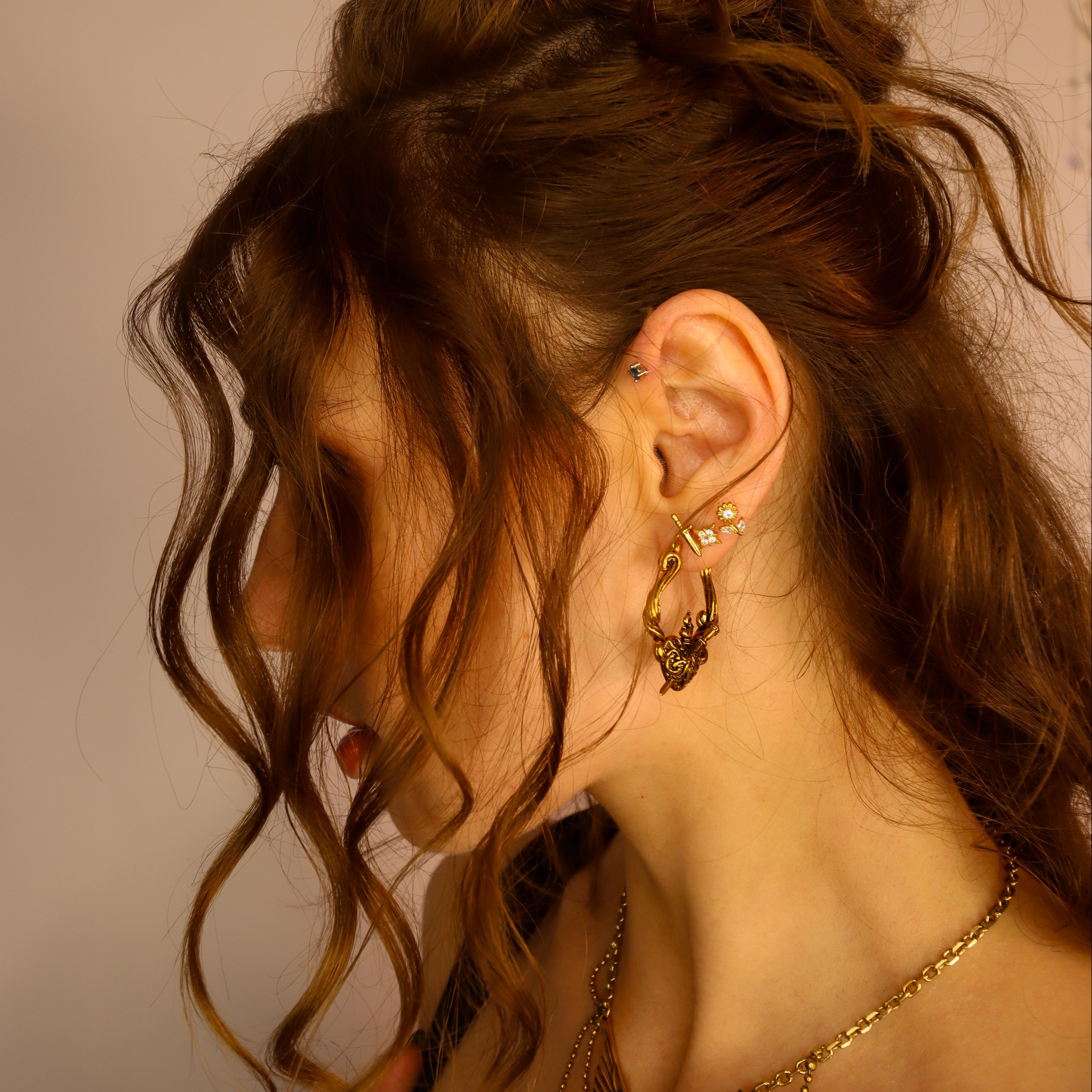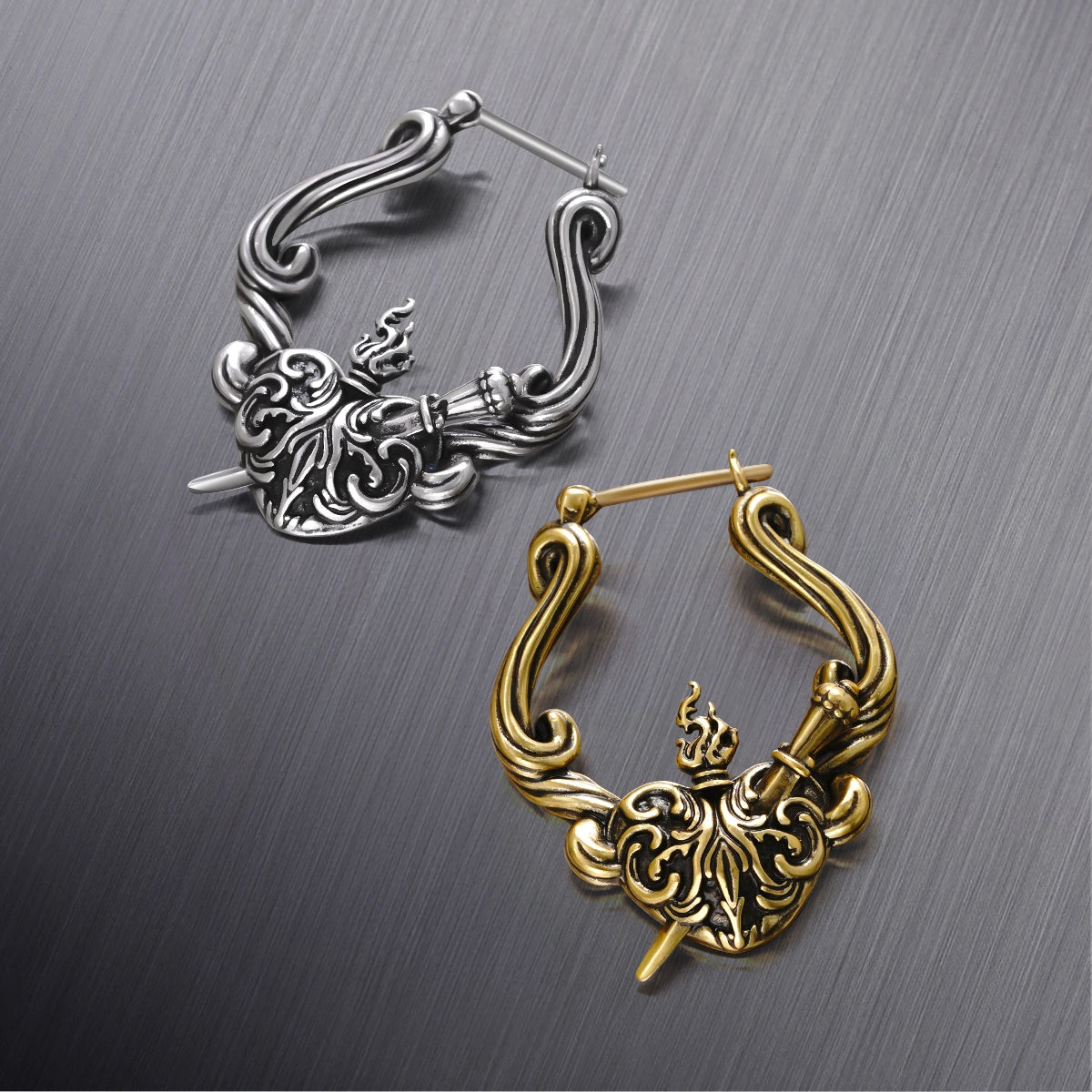 Inspired by Baroque art and Gothic architecture, these earrings evoke themes of timeless romance and strength.