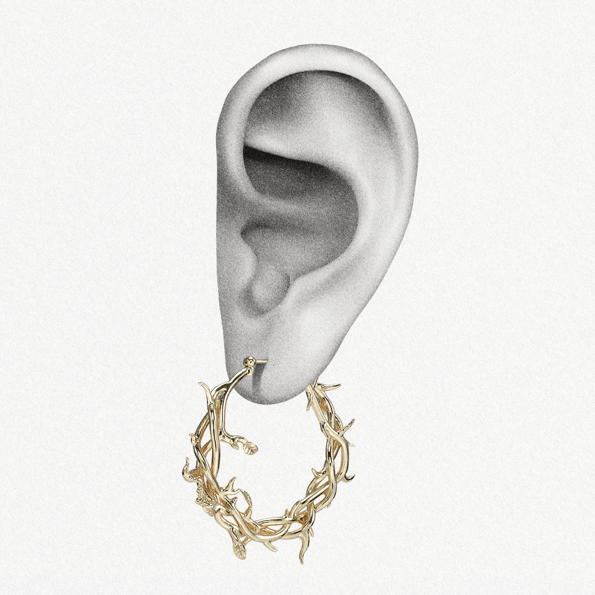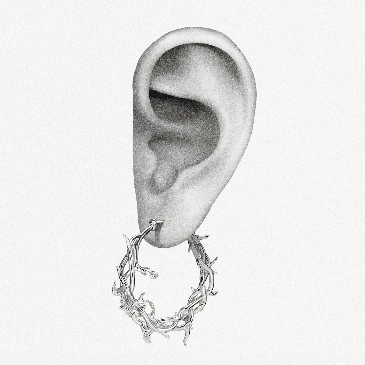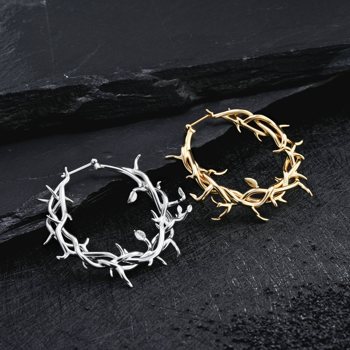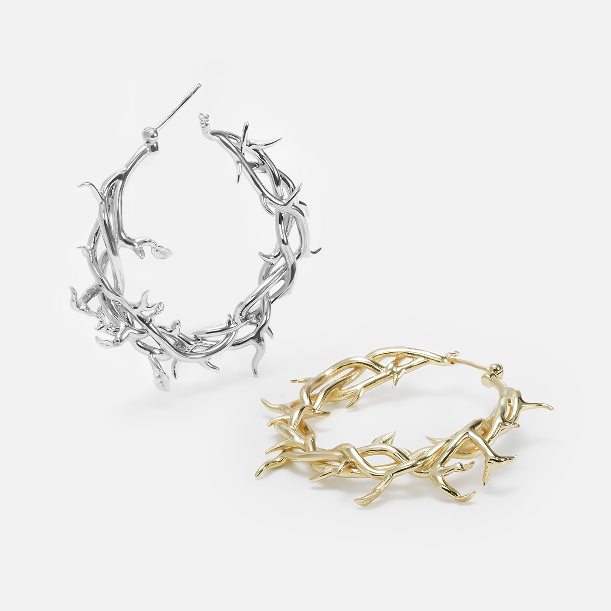 Crafted in high-polish silver, these thorny hoop earrings echo twisted vines and organic curves, forming a bold yet elegant silhouette. This item is sold as a pair.